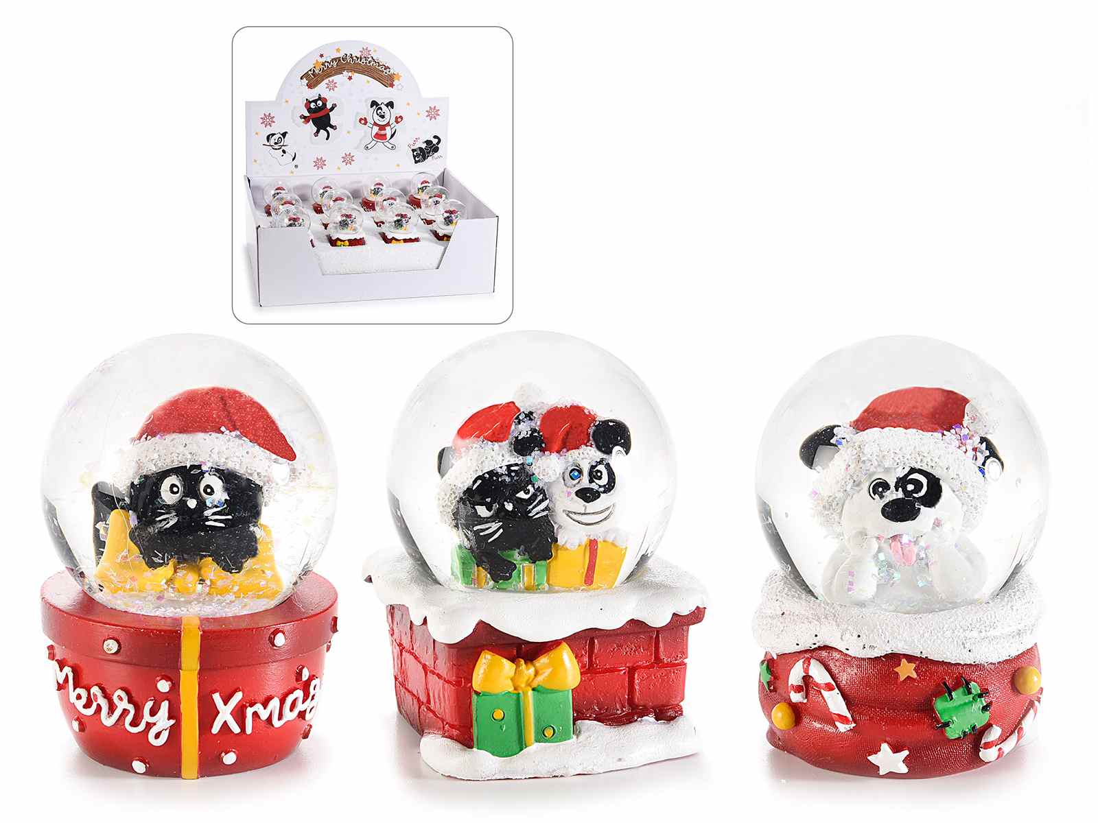 Palla a neve "Xmas Best Friends" su base in resina cane e gatto (553397)