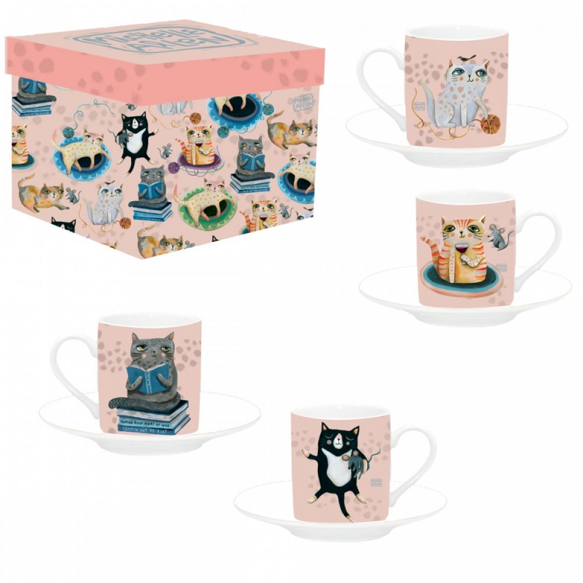 SET DE 2 TASSES CRAZY CAT DANS BOITE CADEAU (D198)