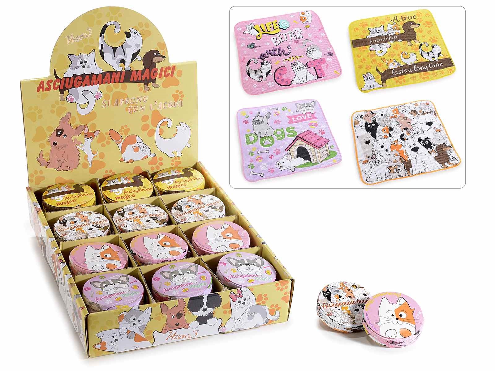 Mini asciugamano magico in cotone "Happy Pet" in espositore (450210)