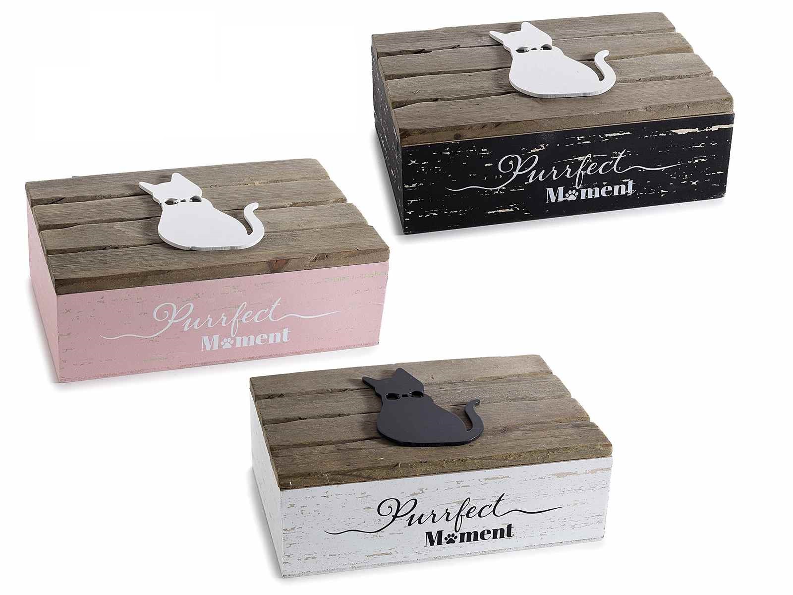 Scatola tè legno gatto in rilievo "Pretty Cats" 6 scomparti (515202)
