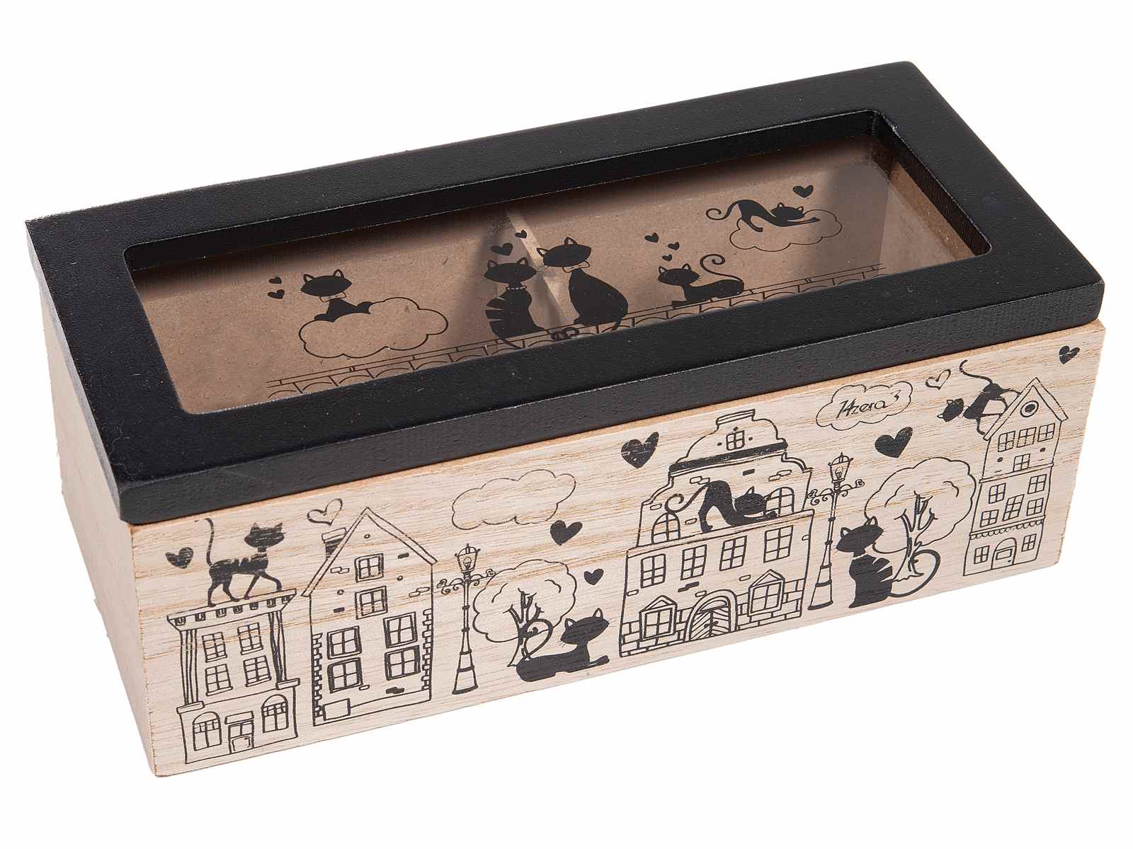 Scatola té/spezie in legno con 2 scomparti "Pretty Cat" (515692)