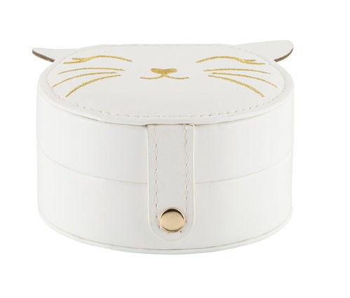 Scatola bijoux Kitty Chat in similpelle a forma di testolina di gatto.