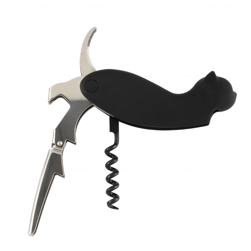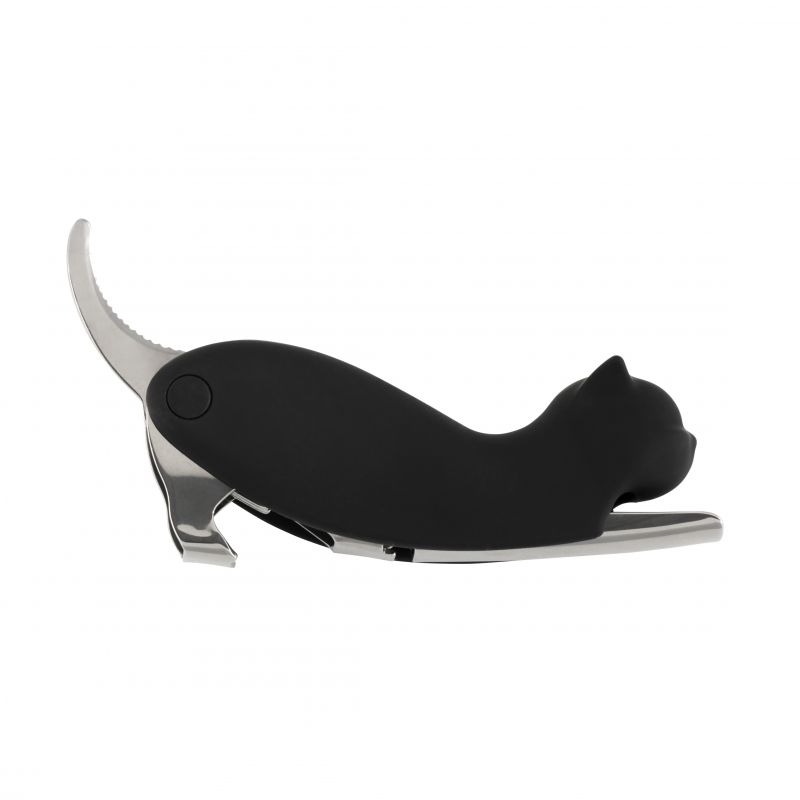 Apribottiglie a forma di gatto nero in plastica e acciaio