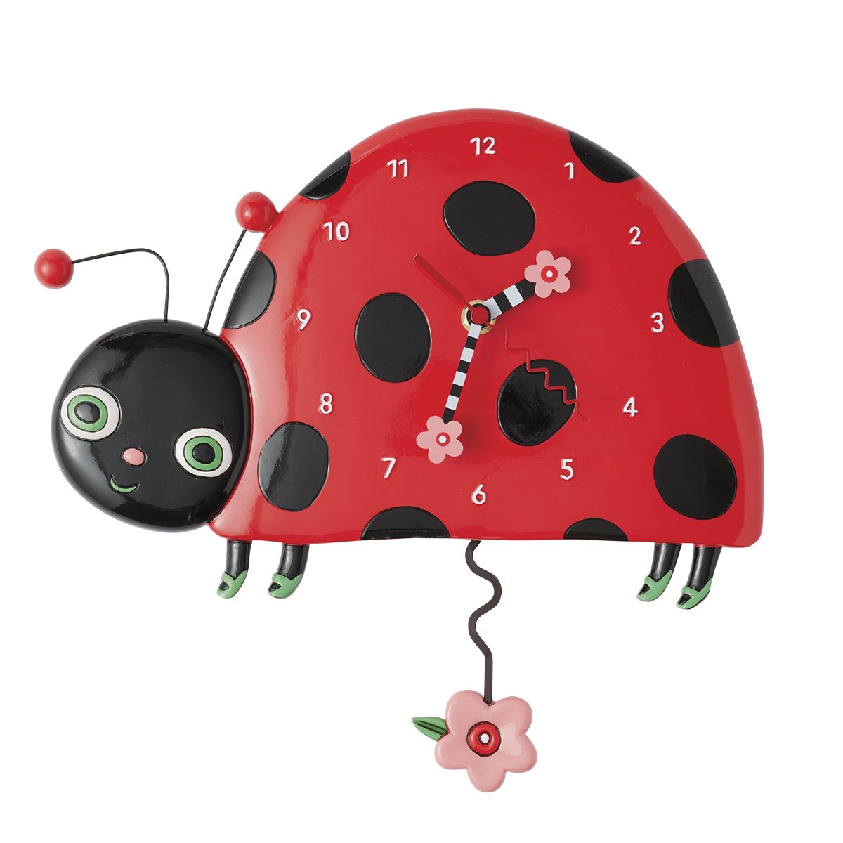 Orologio da muro con pendolo, in resina dipinto a mano.