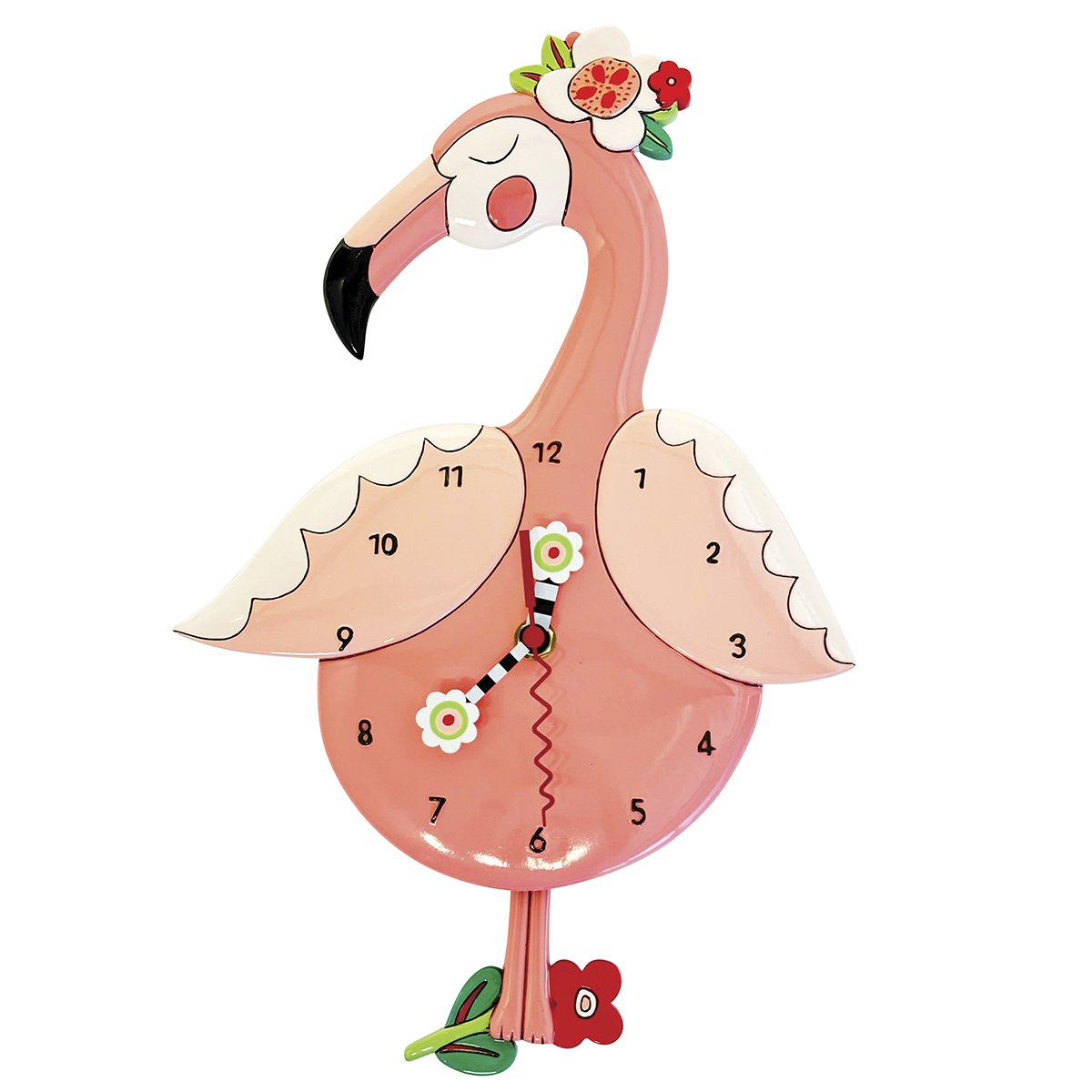 Orologio da muro con pendolo, in resina dipinto a mano.